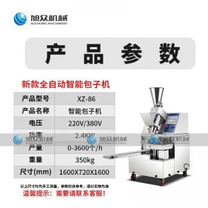 名稱86智能版包子機 電源220/380v 功率2.4kw 產(chǎn)量 尺寸1600*720*1600mm 重量350kg 規(guī)格20-150克/只 其他