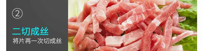 XZ-QX320-切肉機,小型切肉機是一款主要對肉類進行加工的設(shè)備,配置單層刀具一次性切肉片,二次切肉絲,再切成料。刀具采取外置懸臂式設(shè)計,拆洗方便,衛(wèi)生更有保障;配置多種刀具,可加工不同厚度的肉片,實現(xiàn)一機多用;機內(nèi)裝有安全保護開頭,刀具外露時,機器自鎖不能啟動,以保安全;卸下的刀具,不用清洗直接放置在6攝氏度以下的冰箱里,刀具余肉不發(fā)臭。刀片用特殊不銹鋼材料制造,經(jīng)久耐用。