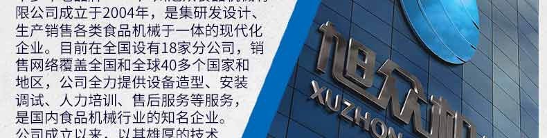 廣州旭眾食品機械有限公司是一家集科研開發(fā),生產(chǎn)設(shè)計,營銷服務(wù)為一體的現(xiàn)代化生產(chǎn)企業(yè)。現(xiàn)代化生產(chǎn)車間,精湛制造技術(shù),所產(chǎn)機械歷經(jīng)市場重重考驗,不斷贏得海內(nèi)外客戶的贊譽。